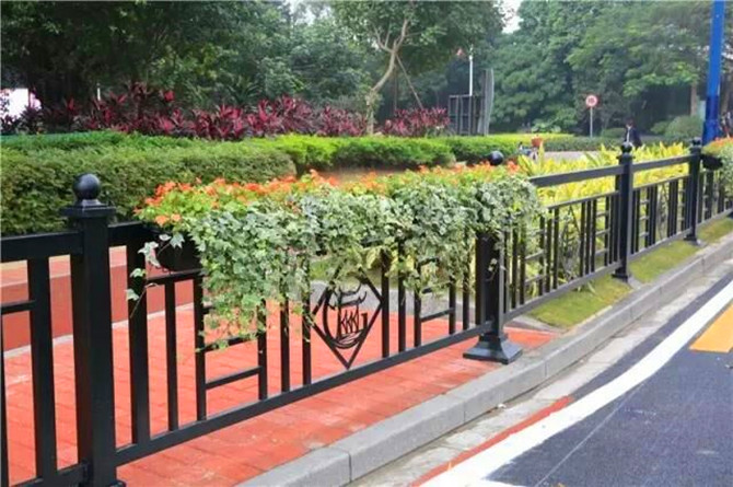 带花箱道路护栏,钢制铁艺护栏一般用在人行道和机动车道的隔离。花箱护栏是栏杆护栏与花箱的结合体,是传统护栏的升级版,不仅可以隔离绿化带、道路,而且种植在花箱里的植物可以美化环境。常用于城市道路护栏、市政隔离护栏,交通广告护栏、机非隔离栏杆,公路中间护栏,桥梁河道护栏、绿化带草坪护栏等防护地段。