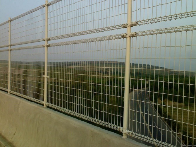 桥梁防护网、桥梁防抛网-双圈护栏网采用冷拔丝后焊接而成,每个网孔的横丝都有一个弯弧,以增加强度,网片与立柱采用不锈钢卡子现场连接,护栏立柱采用焊接钢管制作加盖柱帽,高架桥防护网用于桥梁防护防物落,此产品结构结实,美观,实用。用卡子卡网片,底盘用膨胀螺栓与地面链接。按装简单,省时。此产品可实用15年左右。采用连接附件与热镀管支柱固定,并且经济实惠,且外形美观,风阻少,经过镀锌涂塑双涂层能延长使用寿命,减少维护费用,且安装便利,不易损坏,接触面少,不易沾尘能长久保持整洁 防异物坠落。